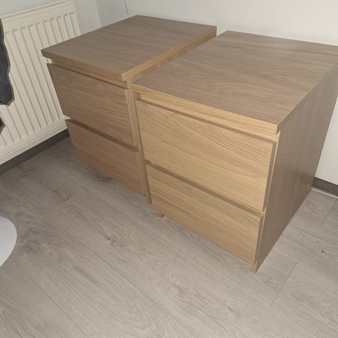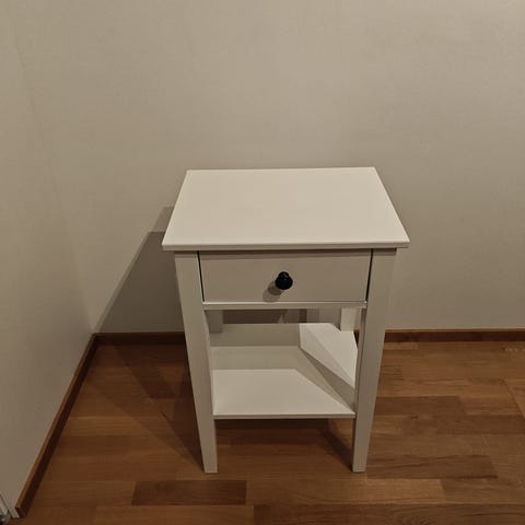 Myydään MALM yöpöytä/lipasto uuden tieltä pois. Hyvä kunto muuten, mutta päälytasossa on kulmassa pieni vekki, kokoamisvaiheessa irtosi, liimattu takaisin. Kuva löytyy tuosta.