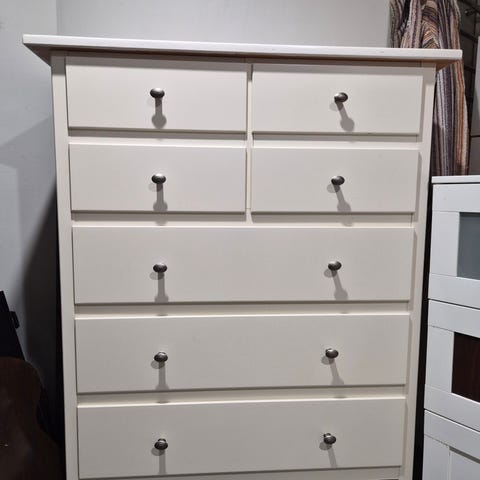 Myydään valkoinen lipasto muuton alta pois. Läheltä katsottuna näkyy pieniä käytönjälkiä/kulumia mutta muuten siisti ja toimiva. Laatikon toimii moitteettomasti.