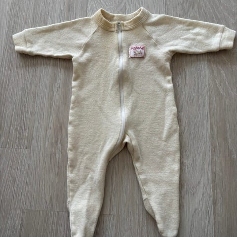 Ruskovilla ihana terällinen merinovillahaalari koko 50. Ihana vastasyntyneelle puvun tai kaukalopussin alle. Todella hyvä kuntoinen.