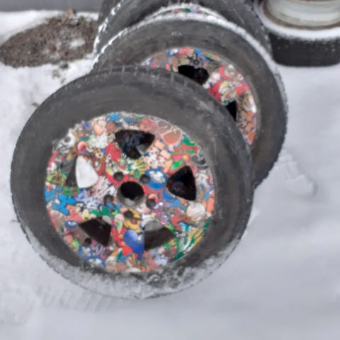 Otsikon mukaiset talvirenkaat mb w211 orkkis vanteilla. Pintaa hyvästi ja nastat tallella.