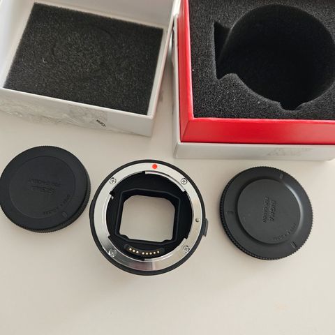 Sigma objektiiviadapteri, Canon EF - Sony FE/E Sovitin mahdollistaa Sigma-objektiivin kiinnittämisen yhteensopivaan kamerarunkoon. Adapterissa on sähköiset kontaktit automaattitarkennusta ja muita kameran ja objektiivin välisiä toimintoja varten. Mukana suojakorkit molemmin puolin adapteria.