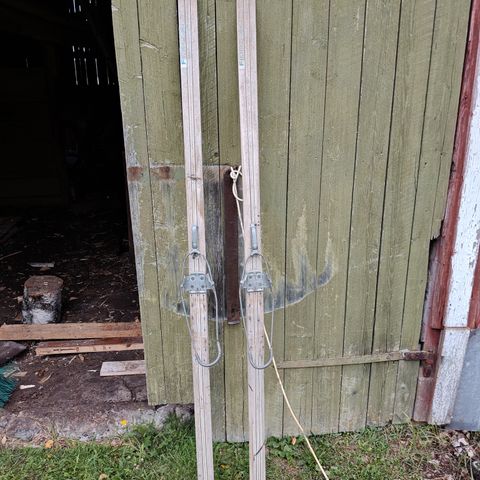 Pika Karhu puusälesukset 70-luvulta, Karhun siteet, pituus 195. Sauvat 140 cm.