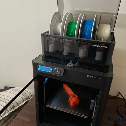 Käytössä Bambu Lab H2D, sekä AMS Pro ja AMS HT, joten onnistuu myös:
