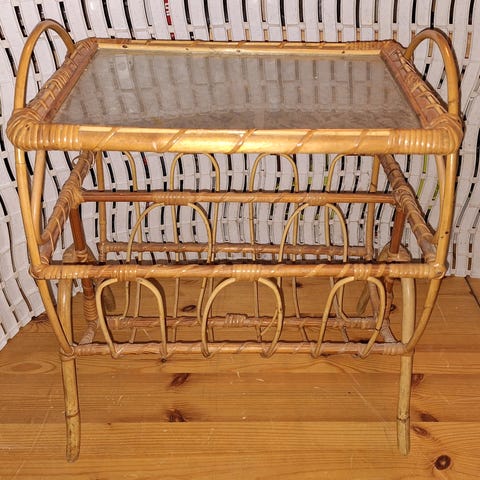 Rottinginen sivupöytä lasikannella