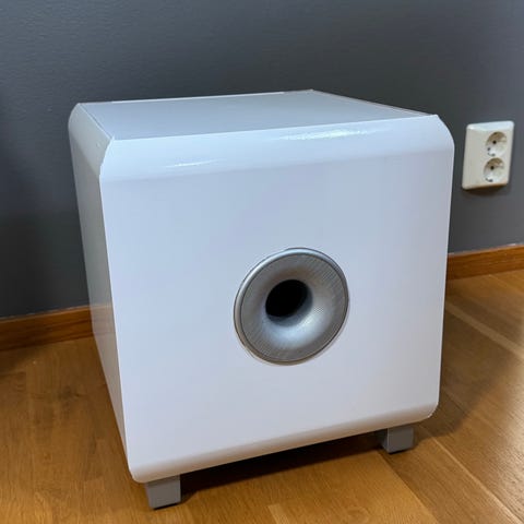 Hienoääninen subbari, joka kaipailee huoltoa. Toimii välillä pitkiäkin aikoja moitteetta, mutta välillä voimakkaampi bassosignaali pukkaa suojatilan päälle - virta säilyy päällä, ääni katoaa. Ääni palaa, kun käyttää virrat pois kytkimestä.