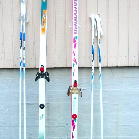 Myydään kenkiin kiinnitettävät sukset, pituus 90 cm, sekä sauvat, pituus vajaa 70 cm. Nouto Muuramen keskustan läheltä. Kulkeutuu omien menojen mukaan Korpilahdelle, Säynätsaloon ja Keljonkankaalle.