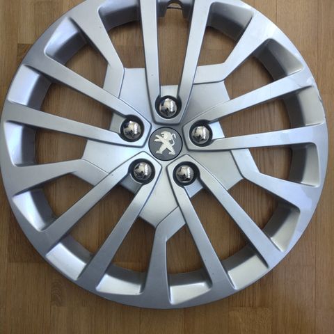 Kuvan Peugeotin pölykapseli (1 kpl). Pölykapseli on juuri uudelleen maalattu ja lakattu. Takana kahdessa kiinnityskohdassa olleet viat korjattu hyvin liimaamalla ja tukemalla (katso kuvista). Ilmeisesti sopii ainakin 307 ja Partner malleihin. Takana teksti COLUMBIA 15". Halkaisija n. 42,5 cm.