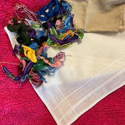 Lisäksi lankaa ja kirjontakehys.