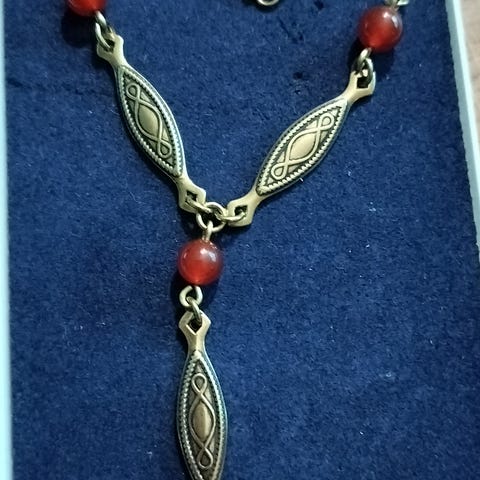 Myydään Marttaliiton 100 v - juhlan kunniaksi valmistettu Kalevala korun pronssinen kaulakoru. Voi käyttää myös rintakoruna.