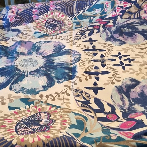 Kukissa mustaa, harmaata ja turkoosinvihertävää.