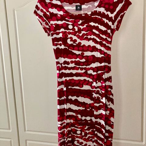 Nanso naisten kesämekko, koko XS. Mekko on hihaton ja siinä on pyöreä pääntie. Materiaali on puuvillaa. Kuosina on monivärinen, raidallinen ja graafinen kuvio, jossa on muun muassa keltaisia, vaaleita ja tummia sävyjä. Sopii arkikäyttöön ja kesäiseen pukeutumiseen.