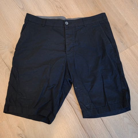H&M Regular Fit miesten shortsit, koko L. Väri valkoinen. Materiaali puuvillaa. Edessä nappi- ja vetoketjukiinnitys sekä vyölenkit. Sivutaskut ja takana taskut.