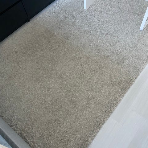Annetaan matto. Banaanisilkkimatto, jossa näkyy vesitahrat keltaisina läikkinä. Miellyttävä kuitenkin jalkojen alla.