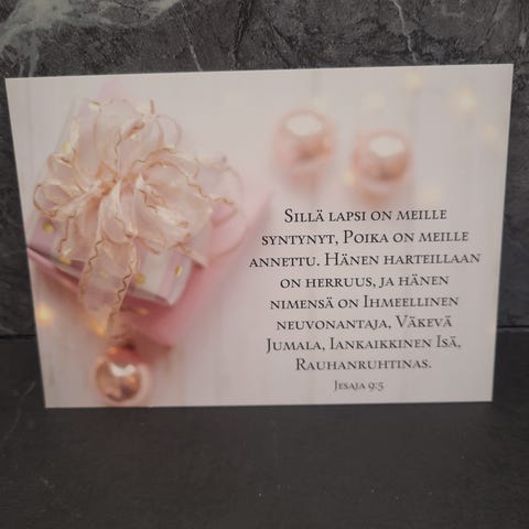 Myydään iso tai pienempi erä Raamatunlauseilla varustettuja korttipahville painettuja kortteja. Kortin toinen puoli valkoinen.
