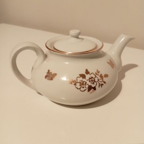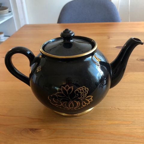 Arabia teekannu tummansininen kultakoristeinen keramiikka