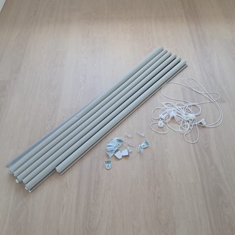 Piilolenkkinauhasta muutamia siimoja katkeillut verhoja vetäessä ikkunan edestä sivuun ja ovat jääneet kiinni tangon liitoskohtaan. Verhotankorenkailla ripustaminen käy hyvin.