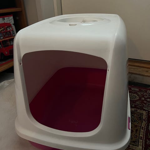 Käytetty kissanvessa. Pohjassa kulumaa (kuvat), muuten ehjä ja toimii.