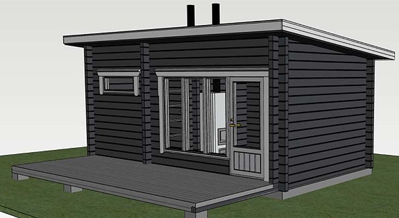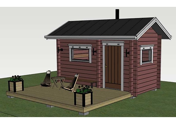 Tämä 20-neliön saunatupa sopii mainiosti erilliseksi saunatuvaksi tai vierasmajaksi.