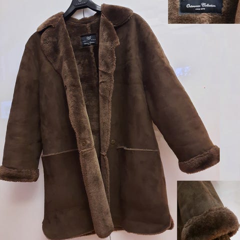 Myydään musta keinonahkatakki, päällinen mokan tapaista polyesteriä, sisus, ranteet ja huppu keinoturkista, koko 38