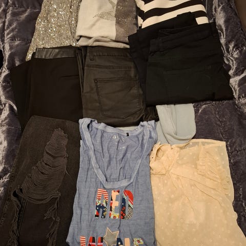 Housupaketti, jossa 7:t kivat housut. Jäi itselle pieneksi ja harmittaa luopua näistä, mutta tilaa on tehtävä.