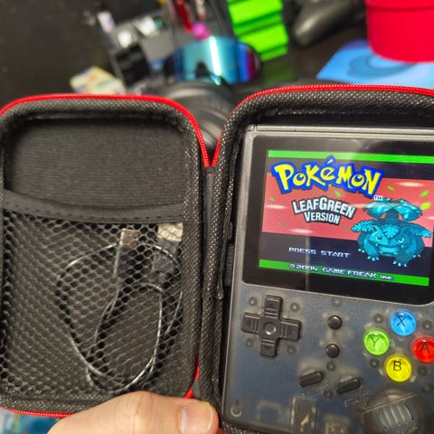 Hyväkuntoinen konsoli jossa yli 100 peliä sisällä. Toimii virtajohdolla (kuuluu kauppaan) tai 3x AAA patterit.