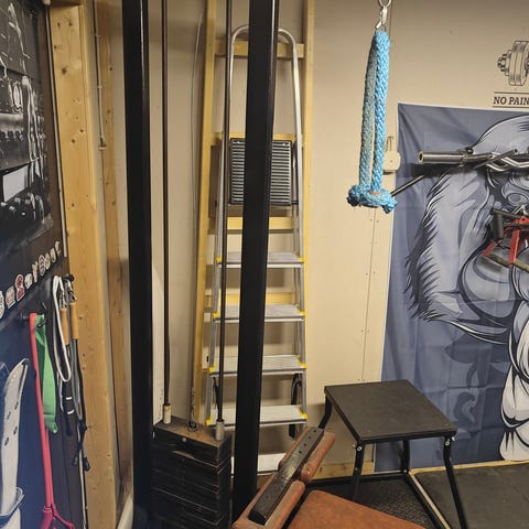 Aikoinaan kuntosalilta ostettu oikea Normann ylätalja. Painopakka 60kg. Istuinkorkeus säädettvissä. Mukaan leveä tankokahva. Mitat: k220 l60 s75.
