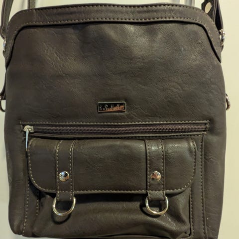 Jouni exlusive -olkalaukku. Noin 29x25cm. Useampi lokero vetoketjujen kera. Koiratalous. Ylöjärven Asuntilassa.