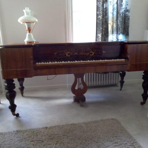 Antiikkinen metallirunkoinen ruotsalainen taffeli piano. Metallirunkoinen pysyy paremmin vireessä kuin puurunkoinen. Tällä hetkellä ei ole viritetty. Koko on noin metri kertaa kaksi.