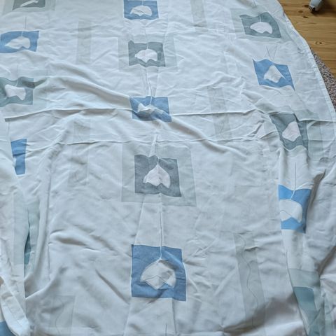 Kauniit kukkakuvioiset verhot, vaalealla pohjalla lila sävyiset kukat. 100% Bomull/Puuvilla/Cotton. Verhot ovat käyttämättömät, ohut kangas.