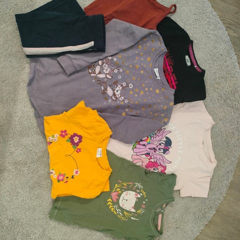 Kuvassa vain osa vaatteista, lisään sitä mukaan kun käyn kaappeja läpi. Hintahaarukka vaatteilla n. 0,5-2€ kpl. Myyn vain pakettina.