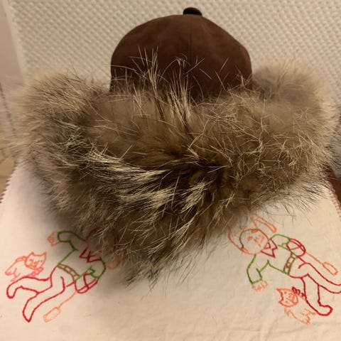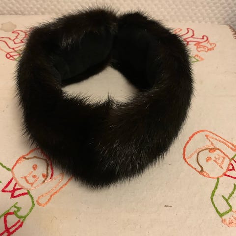 Aarre turkis asuste, ruskea. Materiaalina turkis. Koko 58, naisten malli. Valmistajan merkintä sisäpuolella. Soveltuu käytettäväksi esimerkiksi päähineenä tai kaula-asusteena kylmemmällä säällä. Tekij ä VL Turkis: tumman ruskeaa minnkkiä. Kevyttä huppulaatua. Lämmittää ka vatettaa!