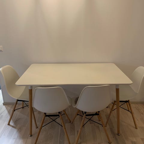 Tuolit ovat erittäin hyvässä kunnossa, mutta ruokapöydässä on muutama jälki, jotka näkyvät kuvissa.