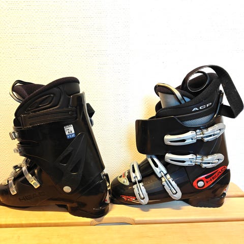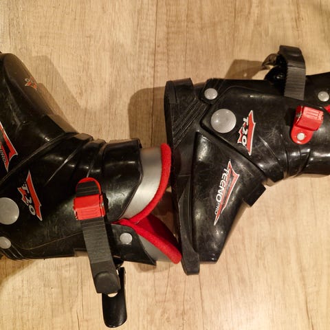 Laskettelumonot Tecno Pro. Koko 26mm, ulkomitta 297mm. Kunto hyvä. Ehyet, käytön jälkiä näkyy.