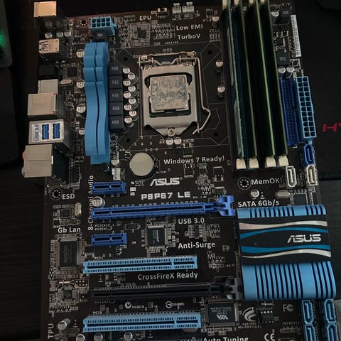 Asus Rog Maximus VIII ranger emolevy jossa kiinni 4GB muistia. Emon nettiliitin ei toimi, lisätty erillinen nettipalikka.
