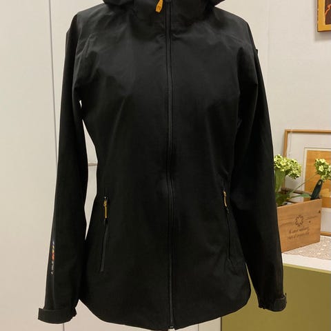 Rukka merkkinen musta tuulitakki jossa kiristysmahdollisuus lantiolla. Kaikki vetoketjut testattu toimiviksi. Hyväkuntoinen, käyttö jäänyt vähälle.