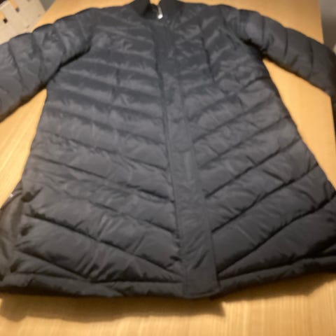 Miss X naisten talvitakki, pitkä malli. Väri beige ja koko XL. Materiaalina polyesteri. Takissa on tikattu, toppamainen rakenne ja pitkä helma, joka ulottuu vähintään polvien alapuolelle. Edessä on vetoketjukiinnitys ja painonappeja. Hupussa on karvareunus. Hihoissa ja helmassa on suora leikkaus. Takissa on sivutaskut ja hihassa pieni pyöreä merkki. Sopii naisten talvikäyttöön ja viileään säähän.