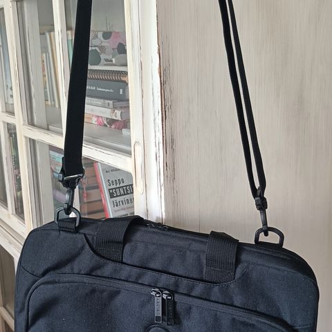 Myyn Dieselin harmaan tietokonelaukun. Suljetaan vetoketjulla ja siinä on kantokahvat ja irrotettava olkahihna. Monta taskua ulko- ja sisäpuolella. Näppärä ottaa mukaan myös yönylireissuun, sillä avaamalla vetoketjun laukkuun saa lisää leveyttä ja yhden uuden lokeron, johon mahtuu hyvin vaatteita ja muuta tarpeellista mukaan.
