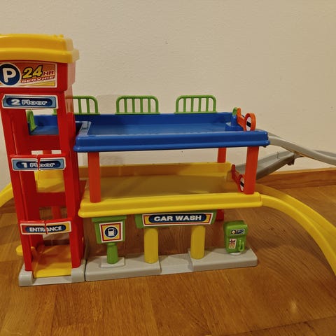 Lasten parkkitalo. Yksi ajoramppi puuttuu.