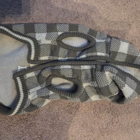 Koiran takki, heijastinliivi, valjaat ja neulottu pipo yms.
