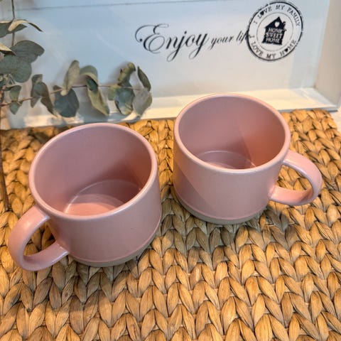 2 kpl uusia valkoisia keraamisia mukeja tai kuppeja jossa on "caffè tiamo" ja "ASA SELECTION" -logot. Korkeus 13,5 cm.