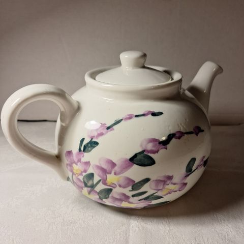 Helina Tilkin suunnittelema käsinmaalattu keraaminen teekannu hyvässä kunnossa.