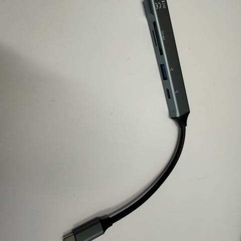 USB-C USB-hubi sovitin harmaa. Sovittimessa on USB-C-liitin kaapelissa ja useita USB-portteja oheislaitteiden, kuten hiiren, näppäimistön, muistitikkujen tai ulkoisten kovalevyjen liittämiseen. Runko on harmaa ja muotoiltu kapeaksi, jolloin se vie vähän tilaa pöydällä tai kannettavan tietokoneen vieressä. Soveltuu laitteisiin, joissa on USB-C-portti ja jotka tukevat USB-hubien käyttöä.