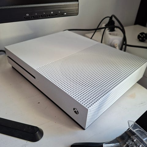 Perus xbox one. En ole vuosiin käyttänyt niin myyn turhana pois, mukaan tulee langallinen ohjain jossa ledit ja yksi langaton akullinen ohjain(akku pysyy vähän huonosti kiinni)