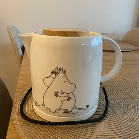 Kuvan hieno keraaminen muumi vedenkeitin.