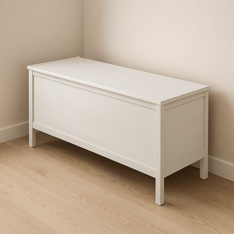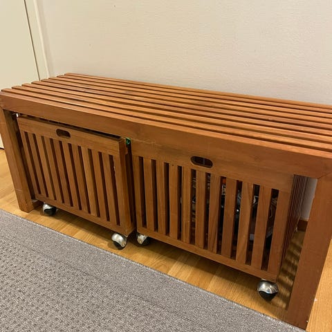 Hyväkuntoinen penkki/säilytyslaatikko. Ruskea mokkakangas. Mitat 45/40/160