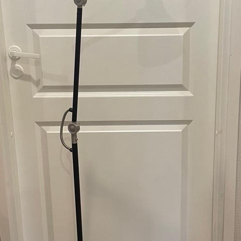 Himmennettävä jalkalamppu, jossa kaksi valaisinosaa. Vähällä käytöllä ollut, lähinnä lukuvalaisimena olen käyttänyt. Merkki Trio/Reality leuchten. Metallia. Korkeus 190 cm.