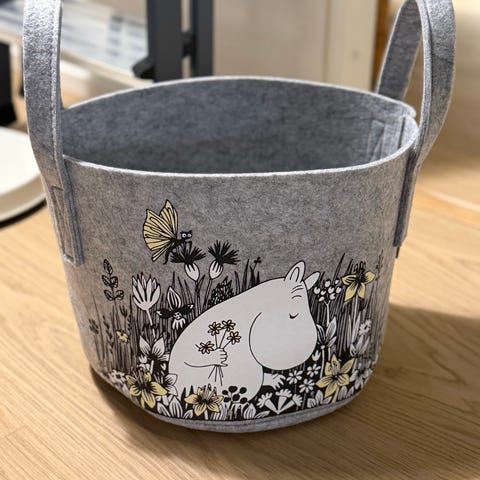Ihanat, hyväkuntoiset Muurlan Muumi-säilytyskorit. Myyn korit settinä. Kaksi keltaista pienempää koria ovat tilavuudeltaan 17 litraa ja isompi vaaleanpunainen 30 litraa. Korit on valmistettu r-PET-kierrätysmuovista, jonka huopamainen materiaali kestää kovaakin käyttöä. UV-suojan ansiosta materiaali ei haalistu auringonvalosta, joten koreja voi käyttää myös ulkotiloissa.