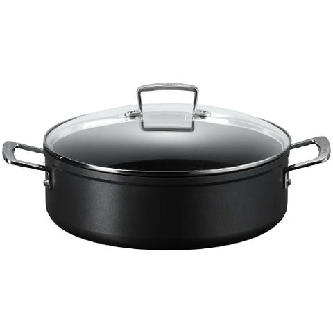 Ergonominen kahva ja kaatonokat: Signature-grillipannu erottuu edukseen suuren ergonomisen kahvansa ansiosta. Vastakkaisella puolella oleva apukahva auttaa tasapainottamaan täyttä paistinpannua sitä siirrettäessä paikasta toiseen. Molemmilla puolilla olevat kaatonokat helpottavat nesteiden ja kastikkeiden kaatamista. Syvät seinämät estävät myös ruoan roiskumisen pannusta.