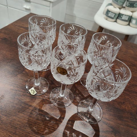 Hyväkuntoiset Neman kristallijuomalasit, 6 kappaletta.