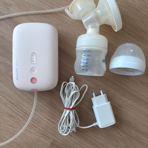Muutaman kuukauden käytössä ollut sähkökäyttöinen Philips Aventin rintapumppu tarvikkeineen. Mukana 2 kpl tuttipulloja joita on käytetty ainoastaan maidon pumppaukseen. Mukaan saa halutessaan myös 2kpl avattuja liivinsuojapaketteja. Molemmista otettu max. 1kpl, kun on avattu vahingossa.